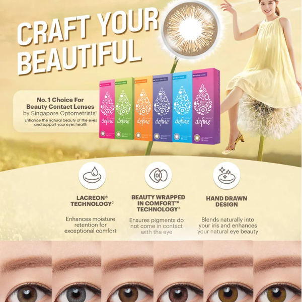 These DEFINE® FRESH GRAYZEL contact lenses by ACUVUE® are designed to enhance your eye color in a healthy and natural way. The advanced LACREON® Technology locks in moisture to create a silky smooth cushion, keeping your eyes fresh and comfortable through the day. Designed with UV-A and UV-B protection for 1-day wear with different strengths available.
